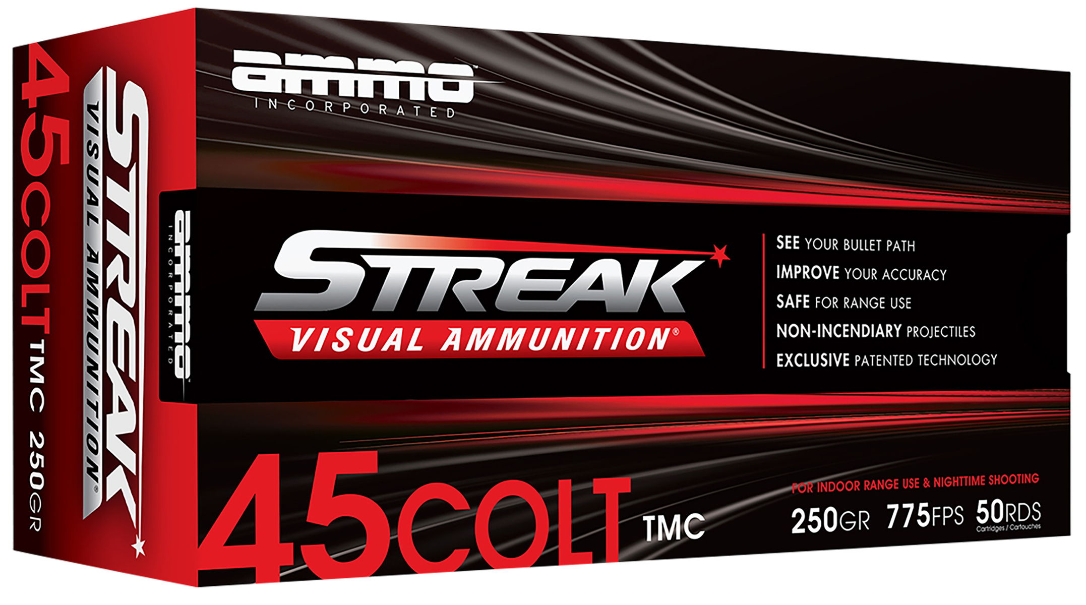 Ammo Inc 45C250TMCSTRKRED50 Streak Visual (RED) 45Colt 250gr Total Metal Case 50 Per Box/20 Case