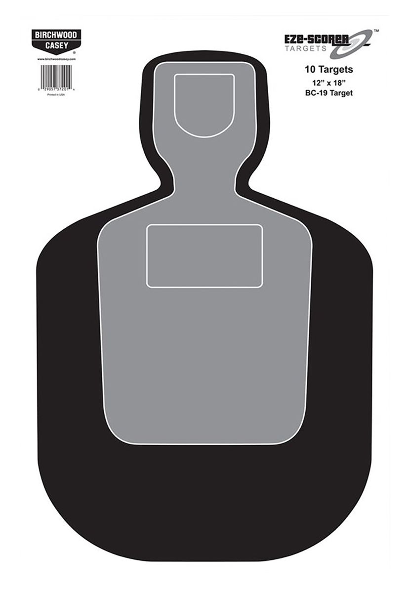 Birchwood Casey 37201 EZE-Scorer BC-19 Silhouette Paper Hanging Universal 12″ x 18″ Black/Gray/White 10 Pk.
