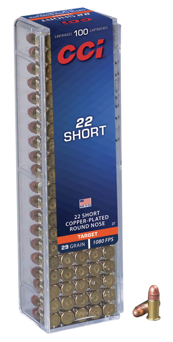 CCI 0027 Target Rimfire 22Short 29gr Copper Plated Round Nose 100 Per Box/50 Case