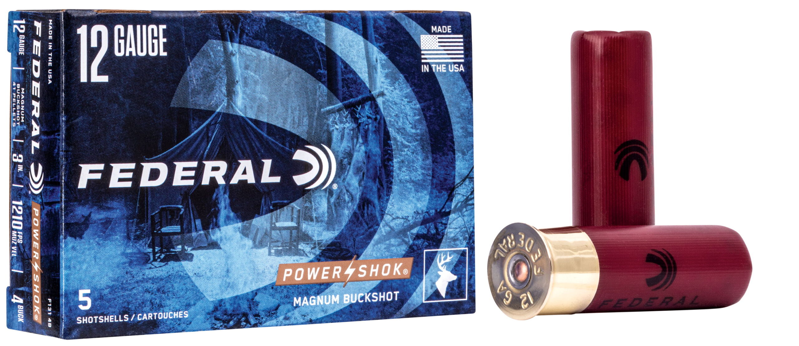 Federal F1314B Power-Shok Magnum 12Gauge 3″ 41Pellets 1 15/16oz 4BuckShot 5 Per Box/50 Case