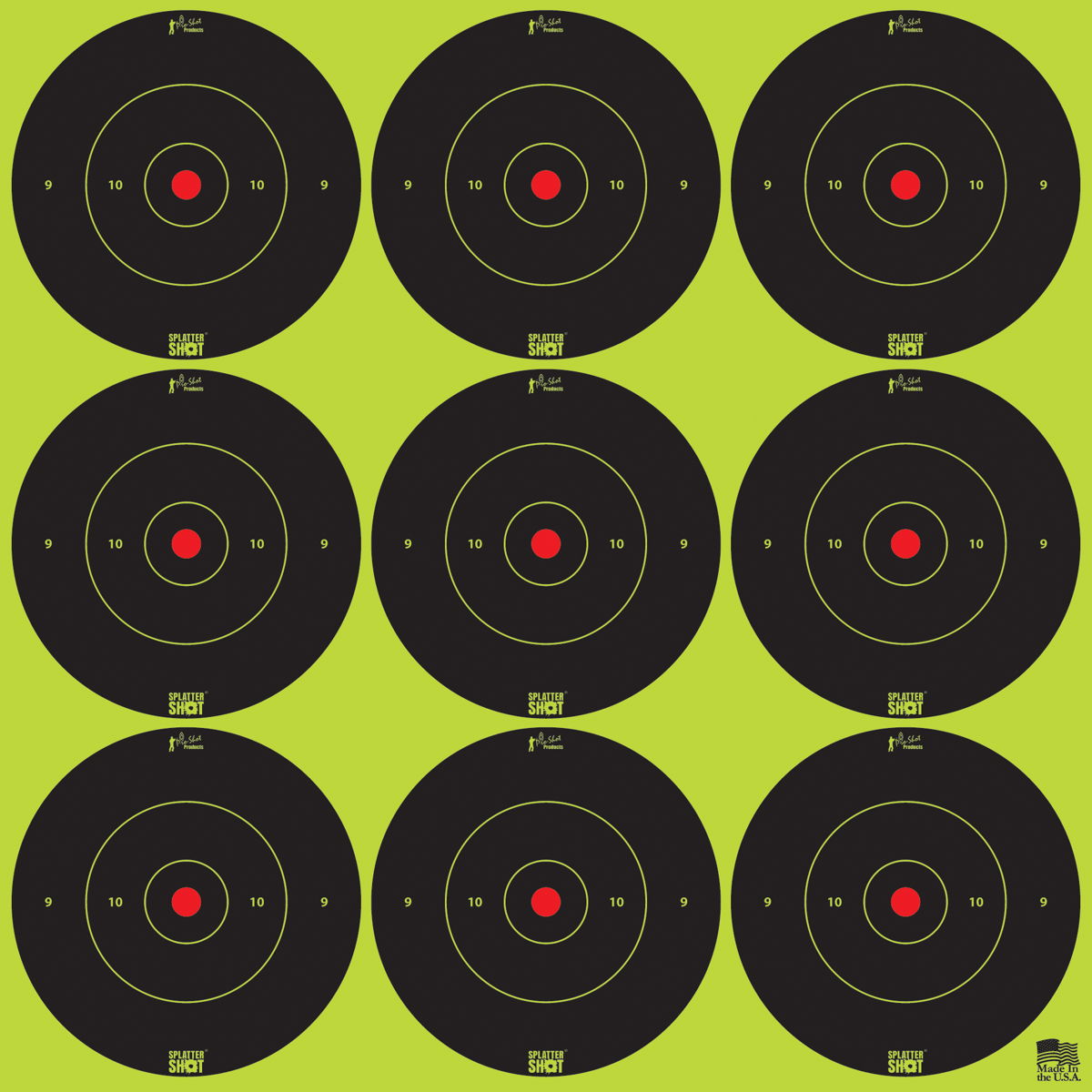 Pro-Shot 2BGREEN108 SplatterShot Black/Green Self-Adhesive Paper Impact Enhancement 2″ Bullseye 108 Targets/12 Sheets
