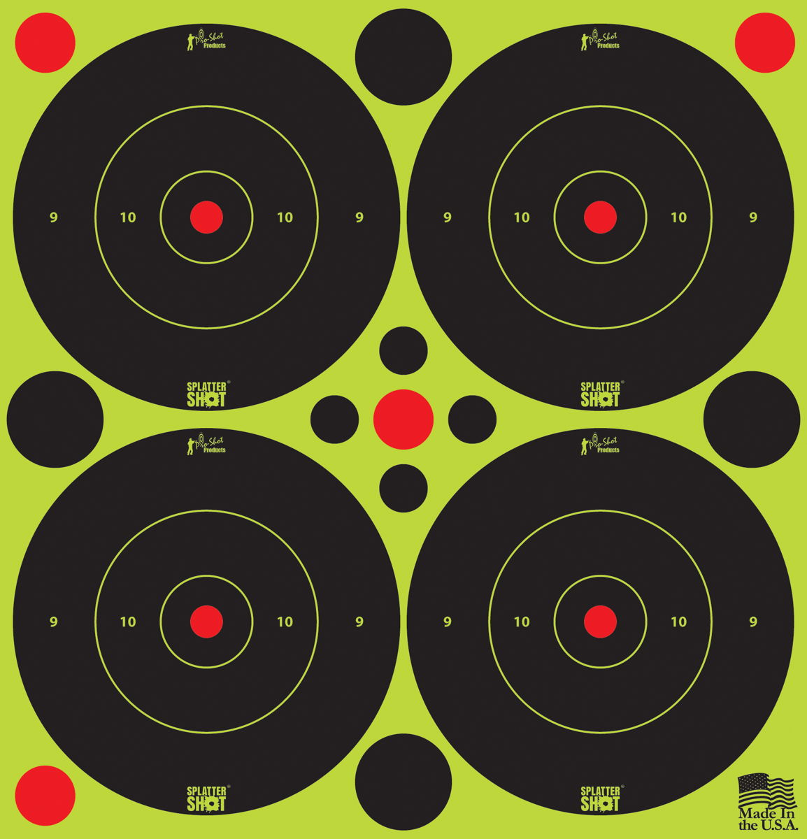 Pro-Shot 3BGREEN48 SplatterShot Black/Green Self-Adhesive Paper Impact Enhancement 3″ Bullseye 144 Targets/12 Sheets Includes Pasters