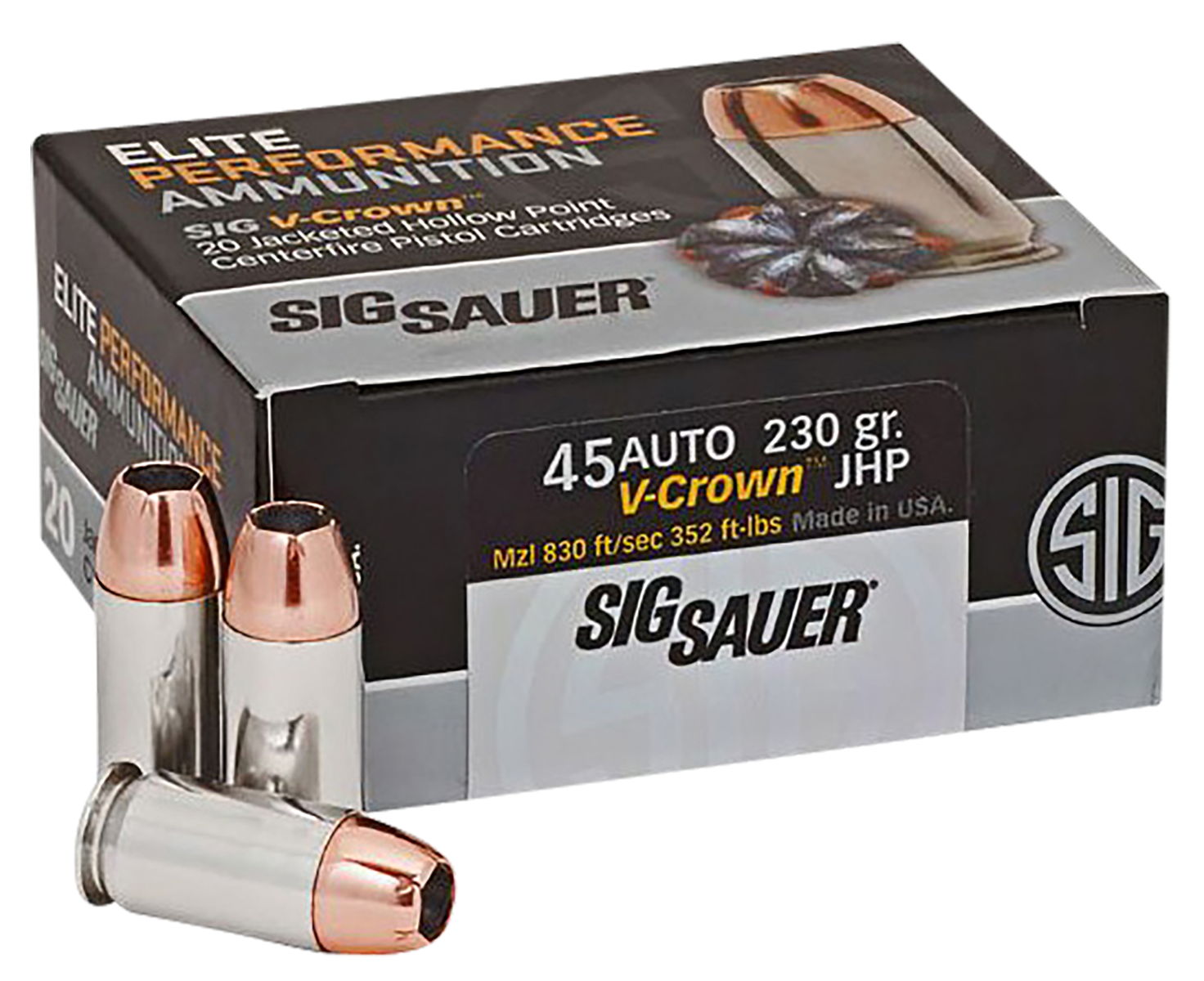 Sig Sauer E45AP220 Elite Performance 45 ACP 230 gr V Crown Jacketed Hollow Point 20 Per Box/10 Case