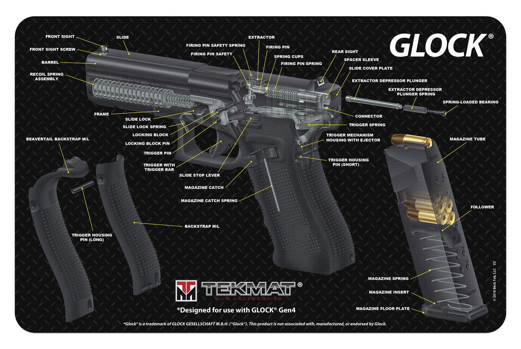 TekMat TEKR17GLOCKCA Glock 3D Cutaway Cleaning Mat 11″ x 17″