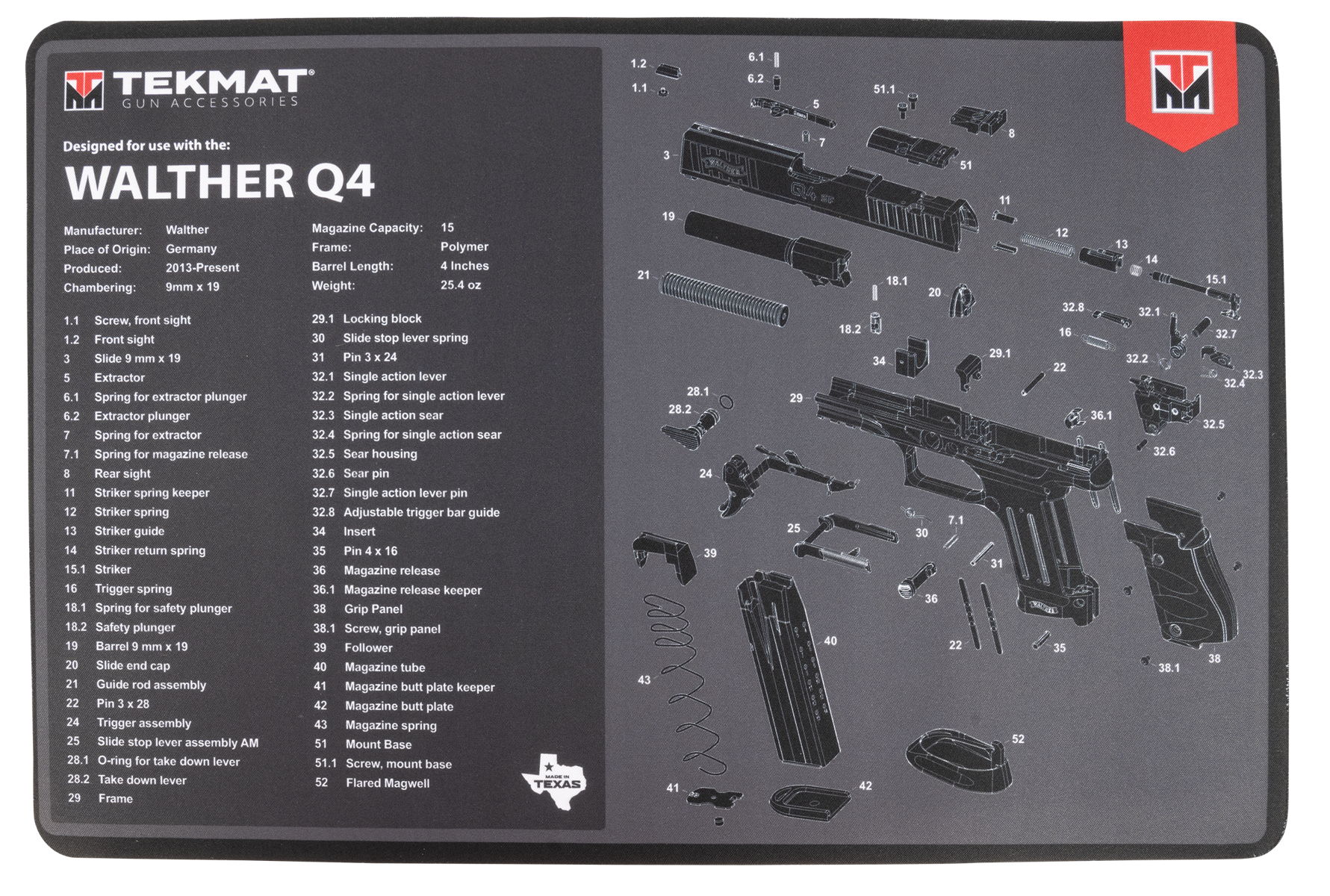 TekMat TEKR17WALQ4SF Walther Q4 SF Cleaning Mat Walther Q4 SF Parts Diagram 11″ x 17″