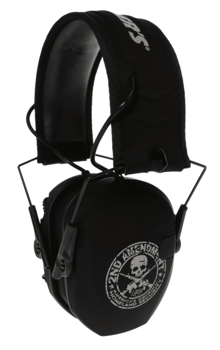 Walker’s GWPRSEMFS2A Razor Slim Electronic Freedom Muff 23 dB Over the Head Black With Distressed 2nd Amendment Polymer