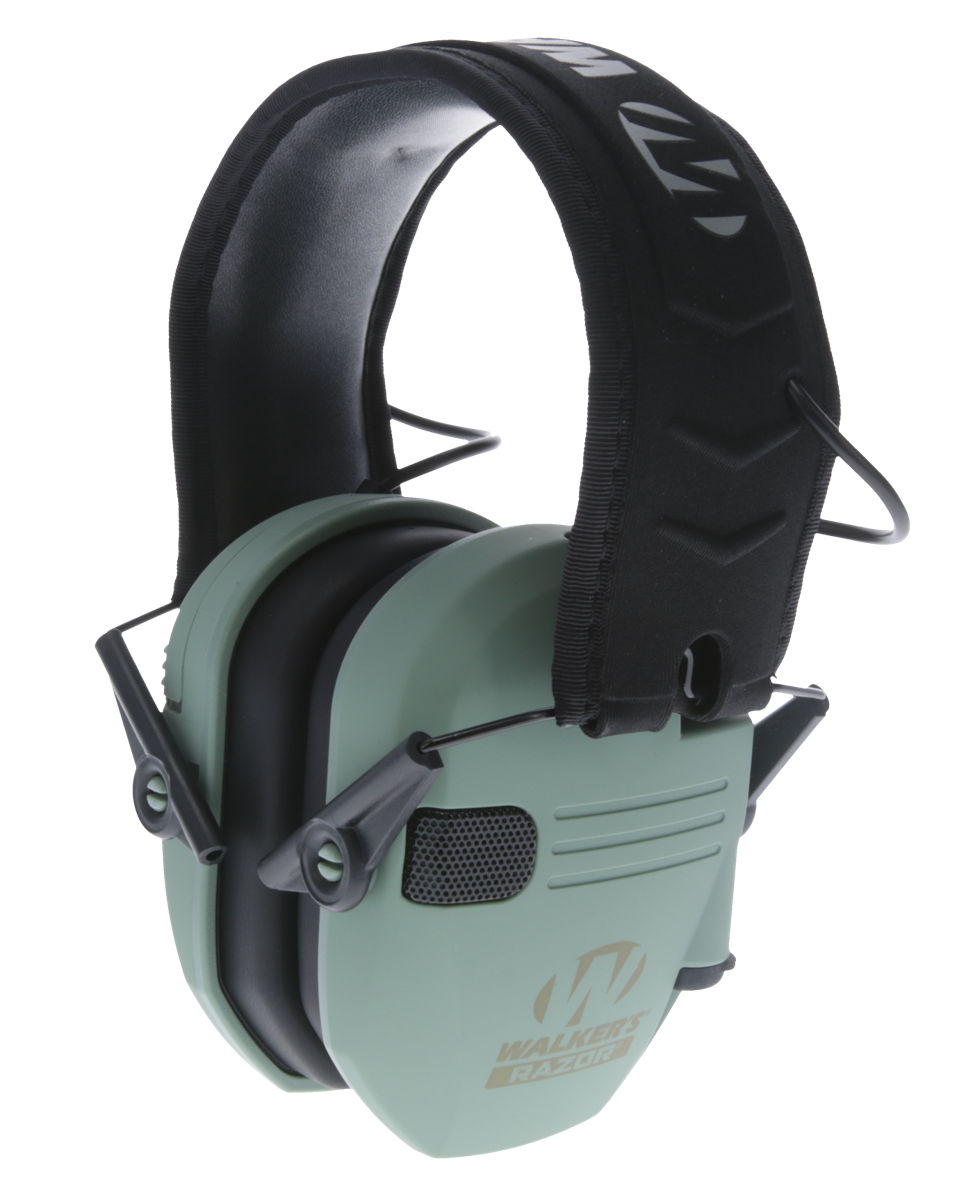 Walker’s GWPRSEMSGN Razor Slim Electronic Muff 23 dB Over the Head Sage Green/Black Polymer
