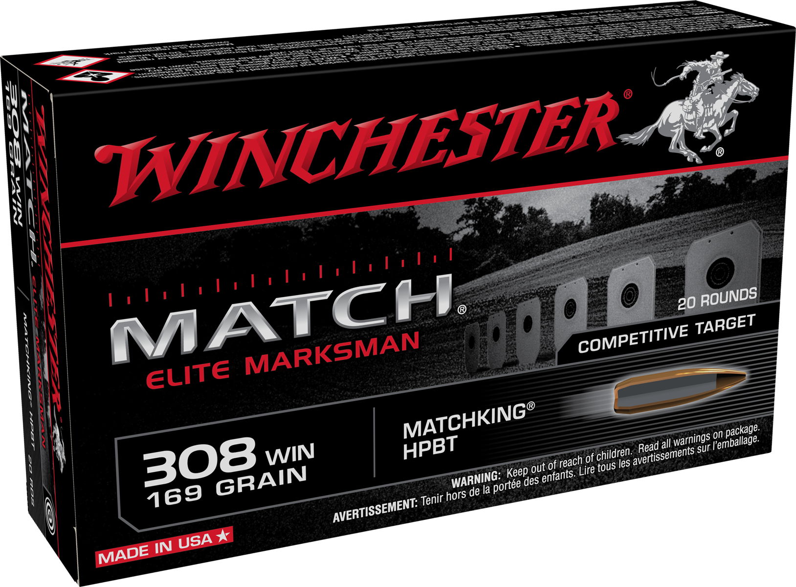 Winchester Ammo S308M2 Match Elite Marksman 308 Win 169 gr Sierra MatchKing BTHP 20 Per Box/10 Case