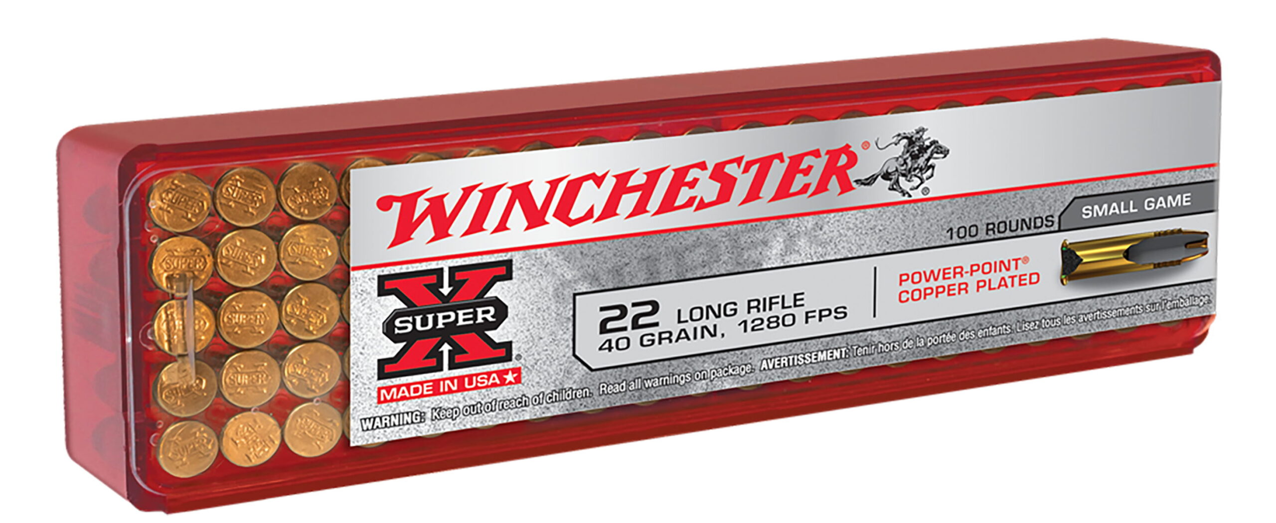 Winchester Ammo X22LRPP1 Super X 22 LR 40 gr Power Point Copper Plated 100 Per Box/20 Case