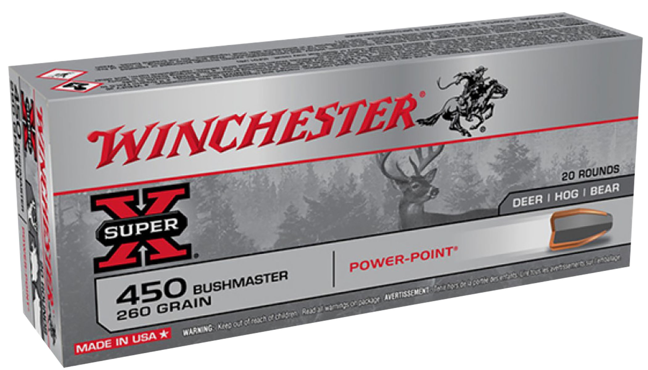 Winchester Ammo X4501 Power-Point 450 Bushmaster 260 gr Power Point 20 Per Box/10 Case